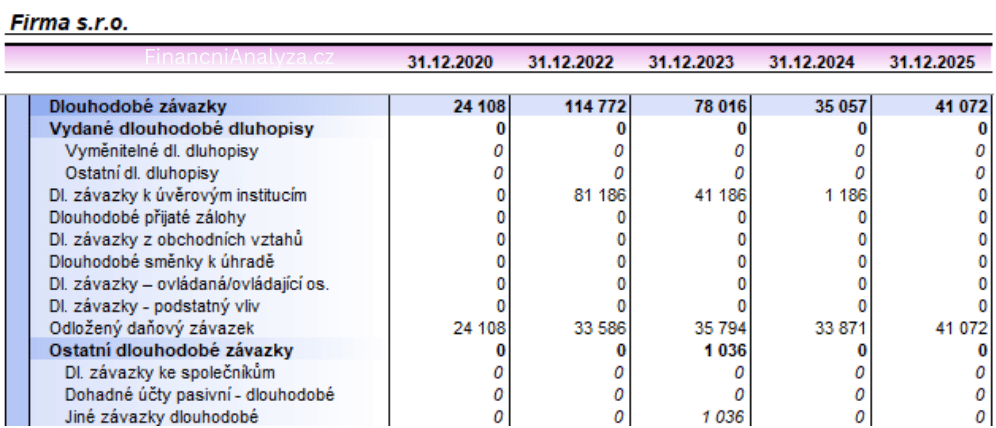 - dlouhodobé smluvní závazky, které nejsou zachyceny v pasivech.
