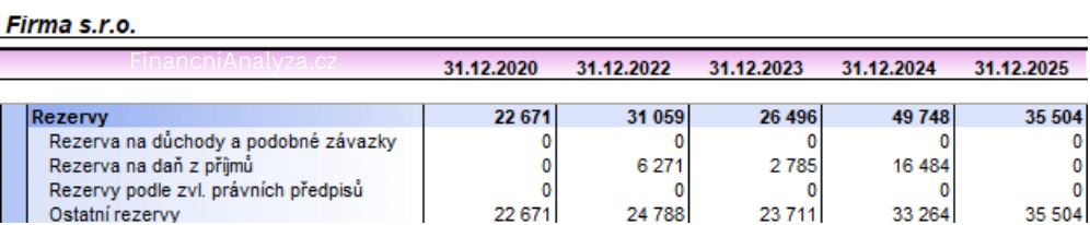 - rezervy nejsou spojeny s krátkodobým odlivem peněz,