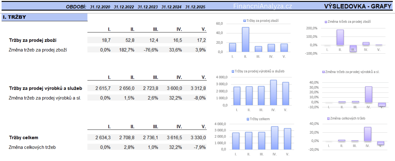 Obrázek znázorňuje grafickou analýzu tržeb