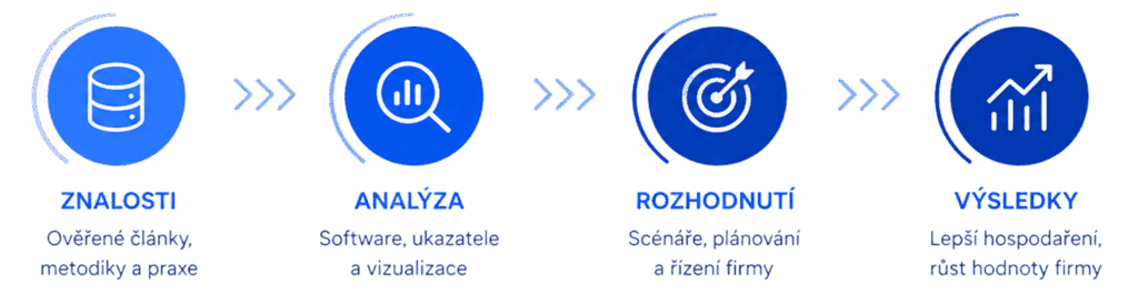 Tři propojené nástroje. Jeden cíl: aby firmy rozuměly svým číslům a dokázaly na jejich základě rozhodovat.
